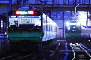 山手線は電車がすれ違えるよう、線路が2本あります。